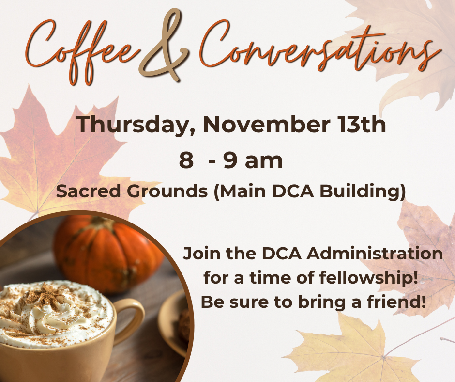 Join us for Coffee and Conversations with the Dayspring Administration in Sacred Grounds.